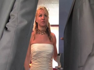 Slut bride fucks two black cock