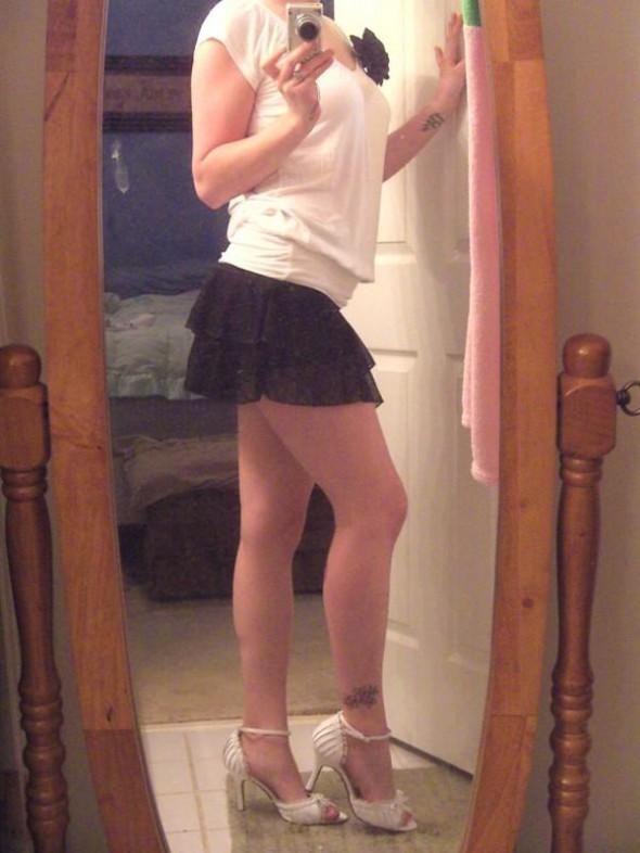 I like your 2nd pic. I can see your thick nipples thru your white blouse. I love your 4th pic wearing a black skirt. I wished I could look up your skirt. I love your 6th pic which shows your black panties under that skirt. I can see the slit of your puss thru your panty. I want to cumm in your puss.